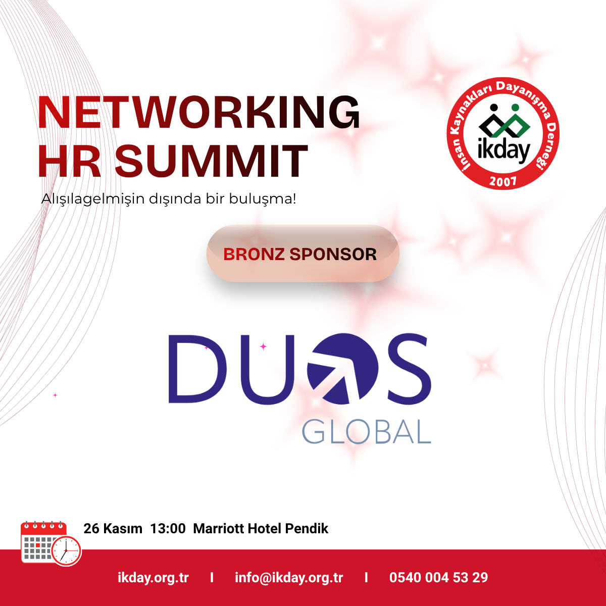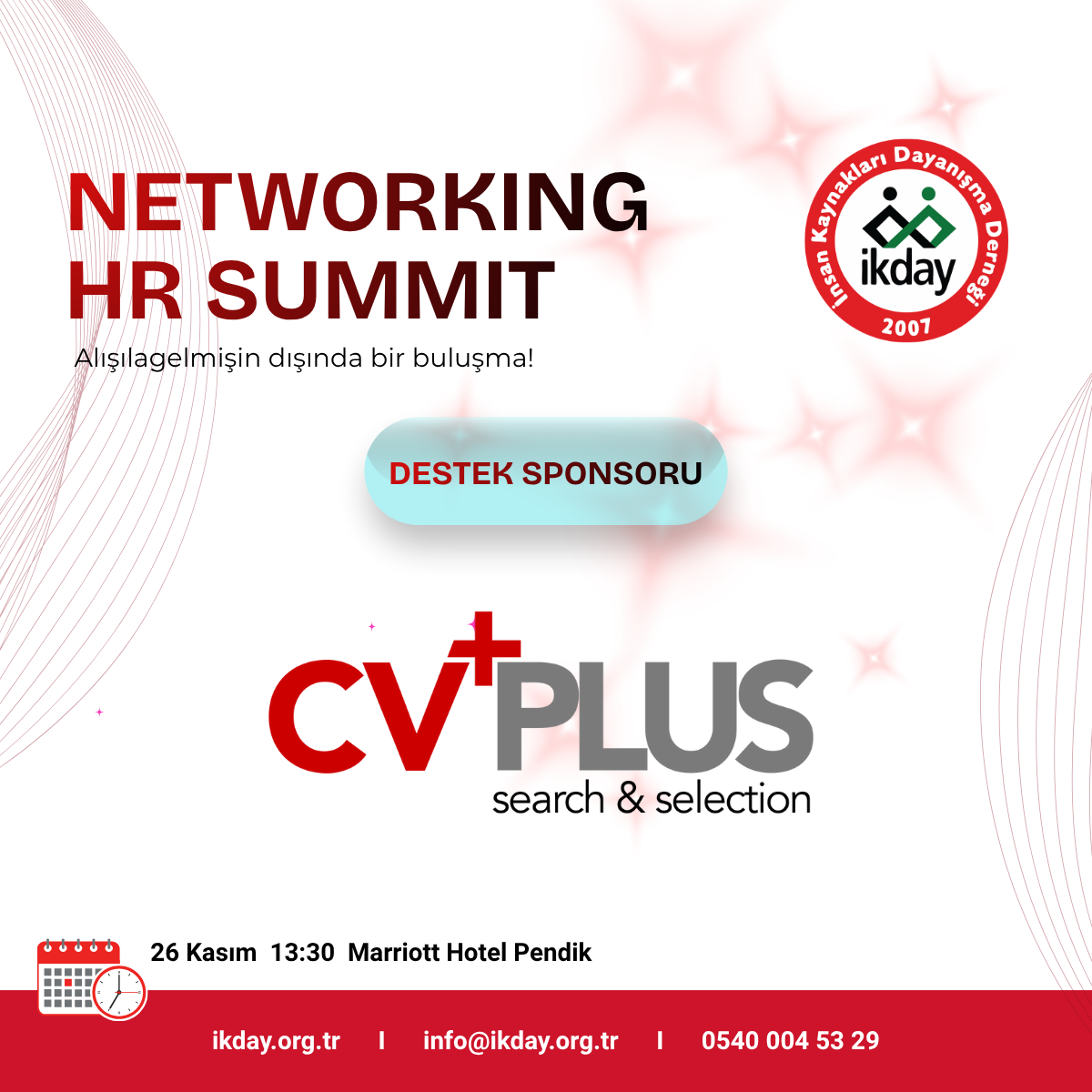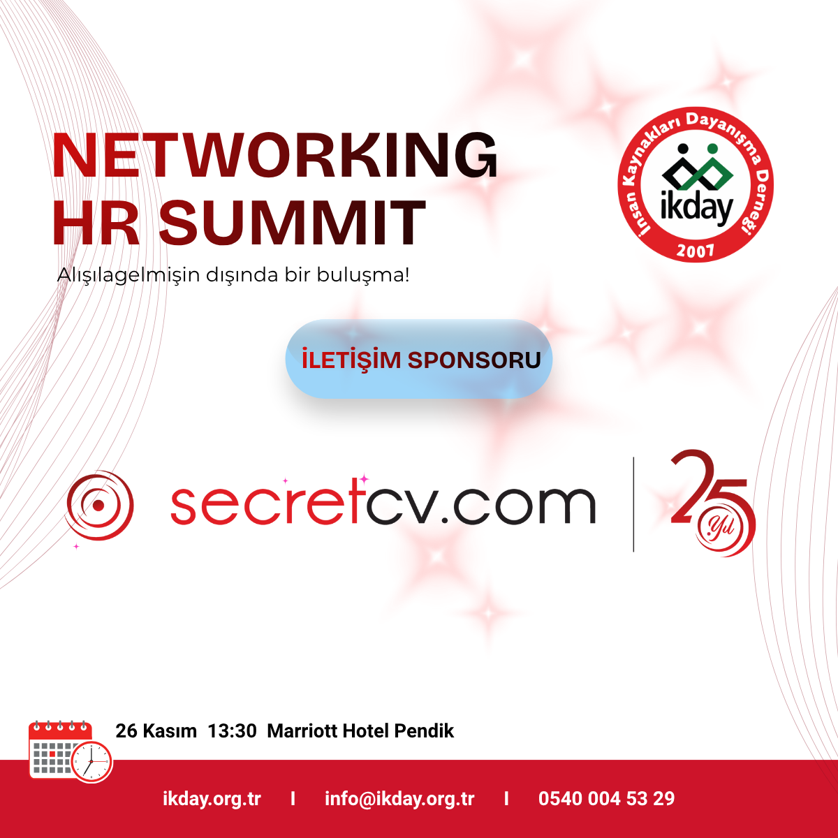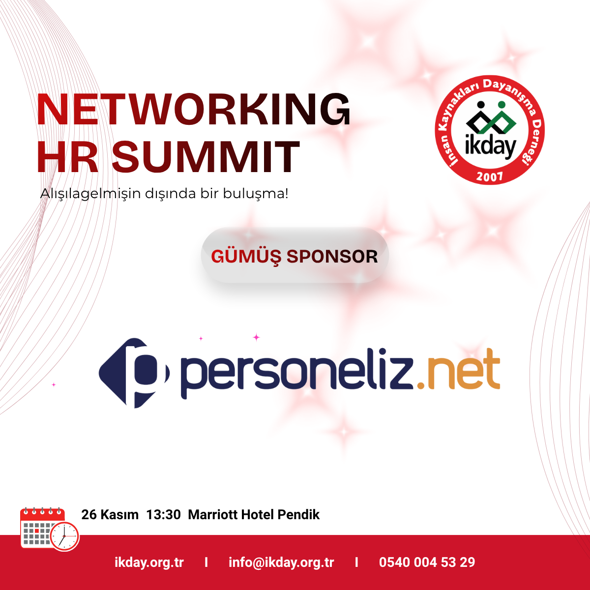 26 Kasım 2025 Çarşamba Saat 13:00-17:40 arası Marriot Hotel Pendik/İSTANBUL'da İKDAY-İnsan Kaynakları Dayanışma Derneği olarak Okan KARACAN'ın sunumu ile gerçekleştireceğimiz "Alışılagelmişin Dışında Networking HR Summit" etkinliğine bekleriz.