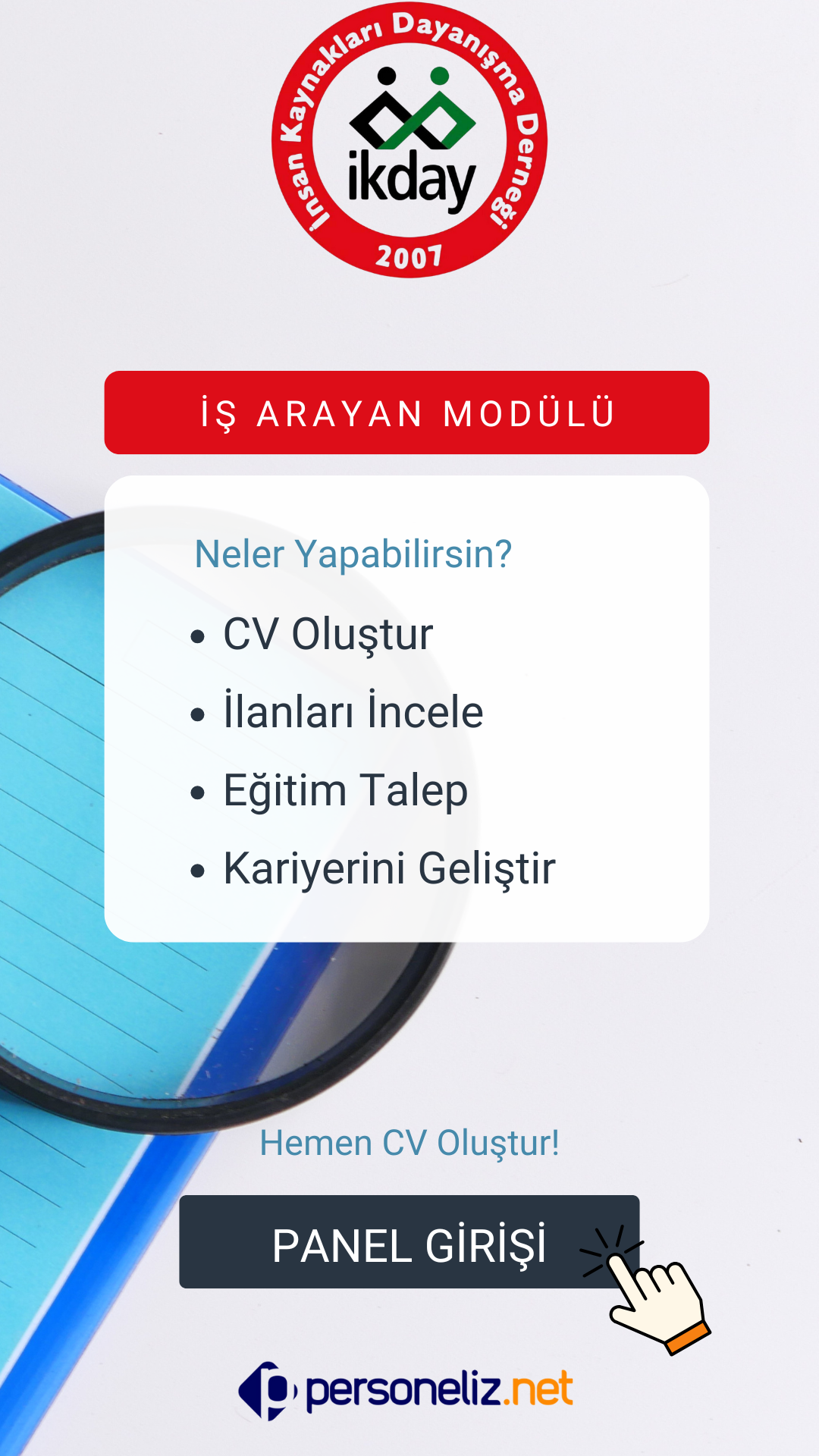 Lütfen üye olduktan sonra özgeçmişinizi tam ve eksiksiz doldurmaya özen gösteriniz. Özgeçmiş doldurduktan sonra ekstra bir İKDAY üyeleri için başvuru yapmanıza gerek yoktur. Fakat aynı özgeçmiş ile personeliz.net üzerinden başka ilanlara başvuru yapabilirsiniz. Bu kural sadece www.ikday.org.tr üzerinden yapılan üyelik ve başvuru için geçerlidir. İKDAY logolu olmayan üye kayıt ekranlarından İKDAY üyelerine toplu başvuru yapılamaz.